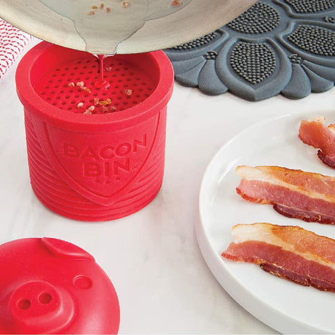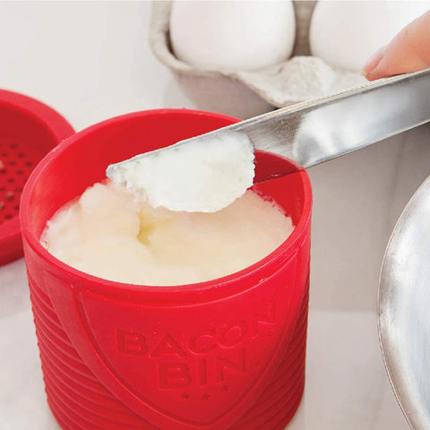 - BACON BIN SILICONE GREASE CONTAINER: Talisman Designs charming Bacon Bin Grease Holder is a fun way to safely strain, cool, save, or dispose of used bacon grease on the countertop or store in the refrigerator.
