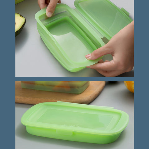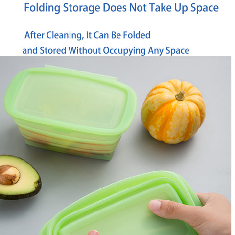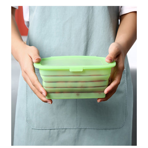 Irvingwad Green Silicone Foldable Fruit and Vegetable Bento Lunch Box with Lid